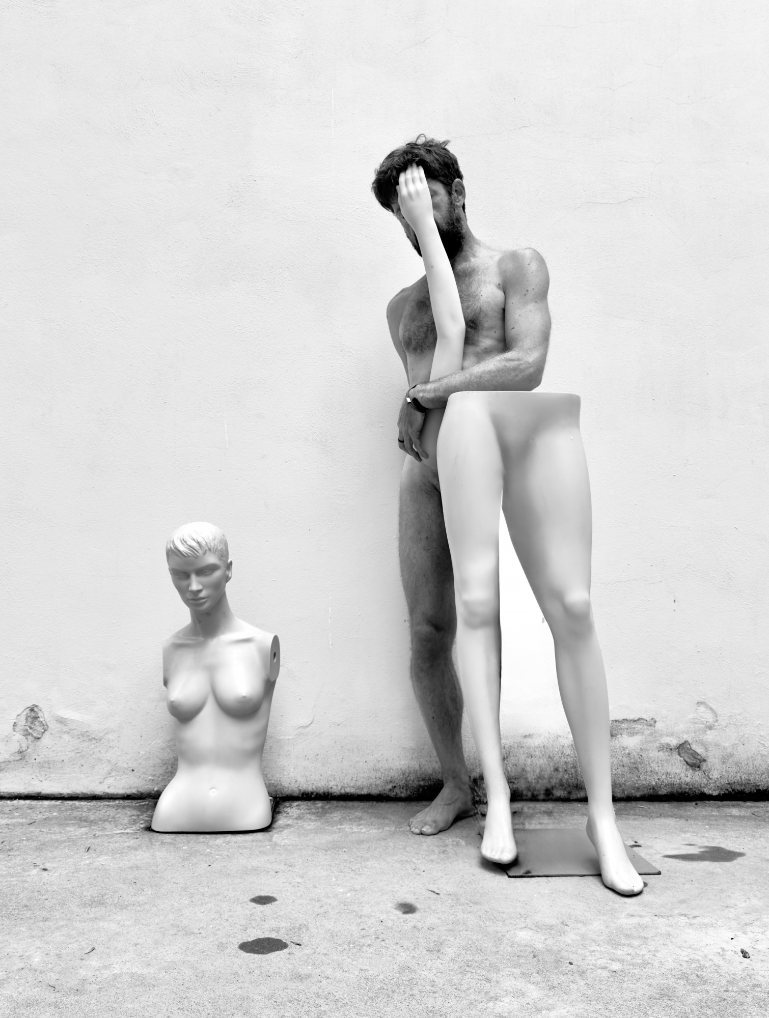 Thus, from the outset, we are mesmerized by the framed photograph of a single eye so large that it hides the body of the man who struggles to carry it without being able to see it, even though we sense that he perhaps perceives it as a destiny or an omen. If it is true that a story like this has a strong theatrical component, it must necessarily open with the image of a curtain, here personified by a zipper that, when opened, reveals the dazzling beauty of a female body. From now on, the images follow one another without following a linear path but following the rhythm of jazz music, where moments of suspension alternate and the gaze lingers on a woman sitting with her back to the camera in a moment of waiting, to others of variations on the theme interpreted by bodies that intertwine, seek each other, and chase each other. Here and there, tributes appear to a metaphysics that the author knows how to render ironic in the role-playing game with the mannequins, as well as to surrealism, represented here by the sudden appearance of a large fish that rests on the woman's body, establishing a subtle and intense visual reference between its eye and her nipple that vibrates like a string. But the real protagonists are the two bodies moving within a space that now narrows to bring them closer and now widens to distance them in a dialectic that, on one hand, emphasizes what they have in common and, on the other, alludes to their differences. The male body is curled up in a cavity that is part refuge and part prison, while the female body, although in a similar situation, seems ready to spring out with a plastic movement, the same with which she sinuously frees herself from her dress, slipping out of it to reappear like an Aphrodite rising from the sea foam. Meanwhile, he is all scrutiny: he does so perhaps almost painfully, leaning out into the light after struggling to open a passage, through glass ruined by time and another broken by who knows whom and why. Finally, he does so by casting a knowing glance, which is returned, before the two bodies recognize each other in an approach that resembles a farewell. And that hand that reaches out and now finds an empty space becomes a symbol of that feeling of nothingness that every ending brings with it.