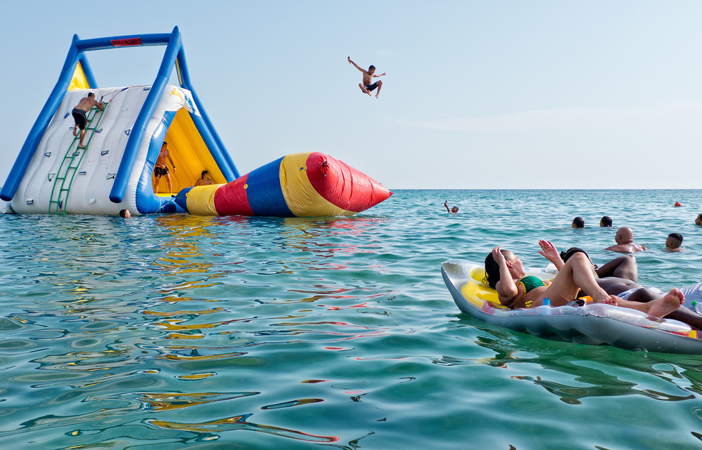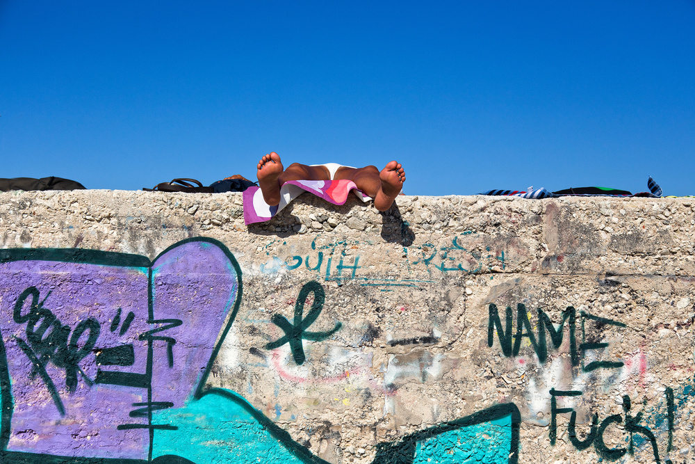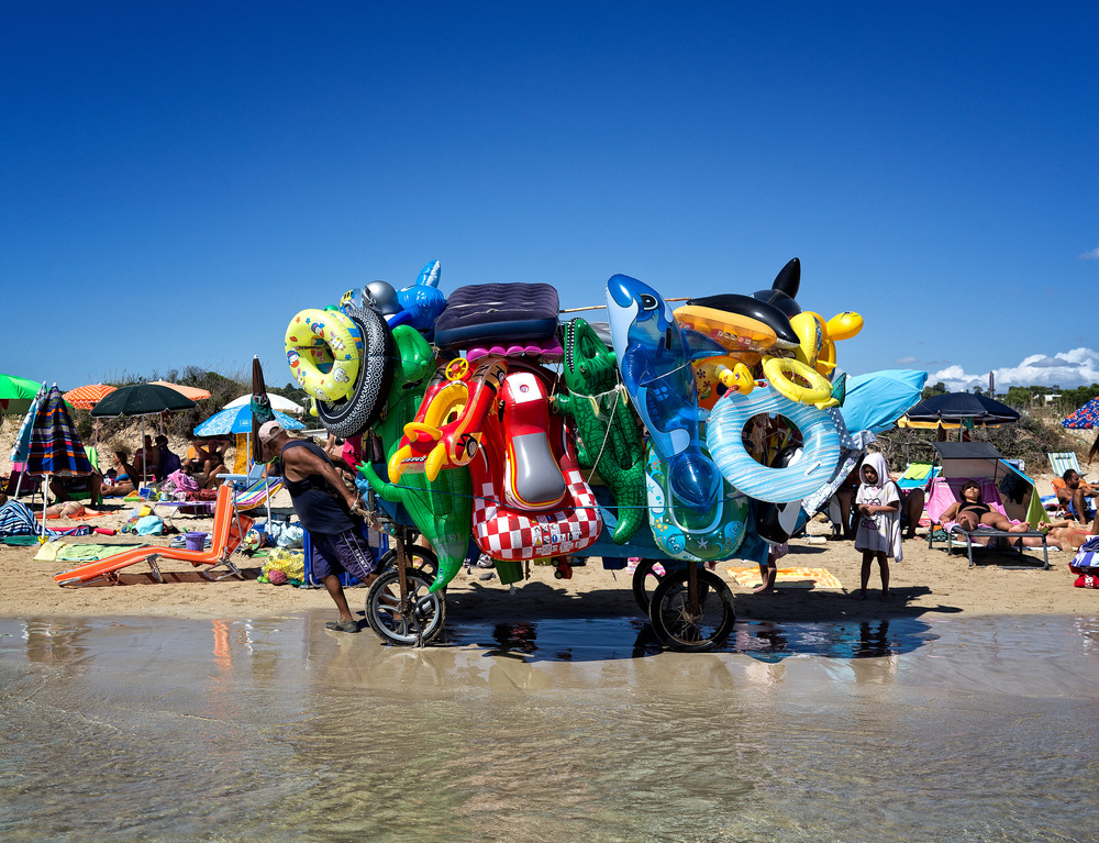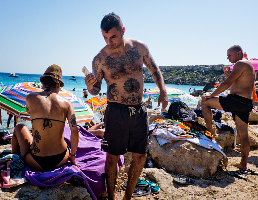 He quotes: “Italian summer is POP, Italian summer is colourful, Italian summer is tattooed, Italian summer is hot, Italian summer is tanned, Italian summer is dangerous, Italian summer is a balloon, Italian summer is feral, Italian summer is furry, Italian summer is the moment in where Italians can still express lightness and “joie de vivre”. The pictures are taken in different locations (i.e. Salina’s island in Sicily, Salento in the Puglia’s region and Forte dei Marmi in Tuscany) through different social classes with the objective of finding a common thread of surreal irony. For me as an Italian expat who has lived in London for 10 years, I see so clearly now, our cultural traits on the beaches of Italy and it evokes strong childhood memories of many long summers spent there. I now love my country more than ever.