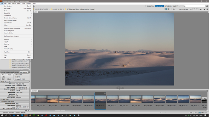 Start by opening Bridge and navigate to the folder or photo you want to add metadata to. Make sure the image (or images if you want to apply the metadata to a batch of photos) is selected and click on File, then click on File Info.