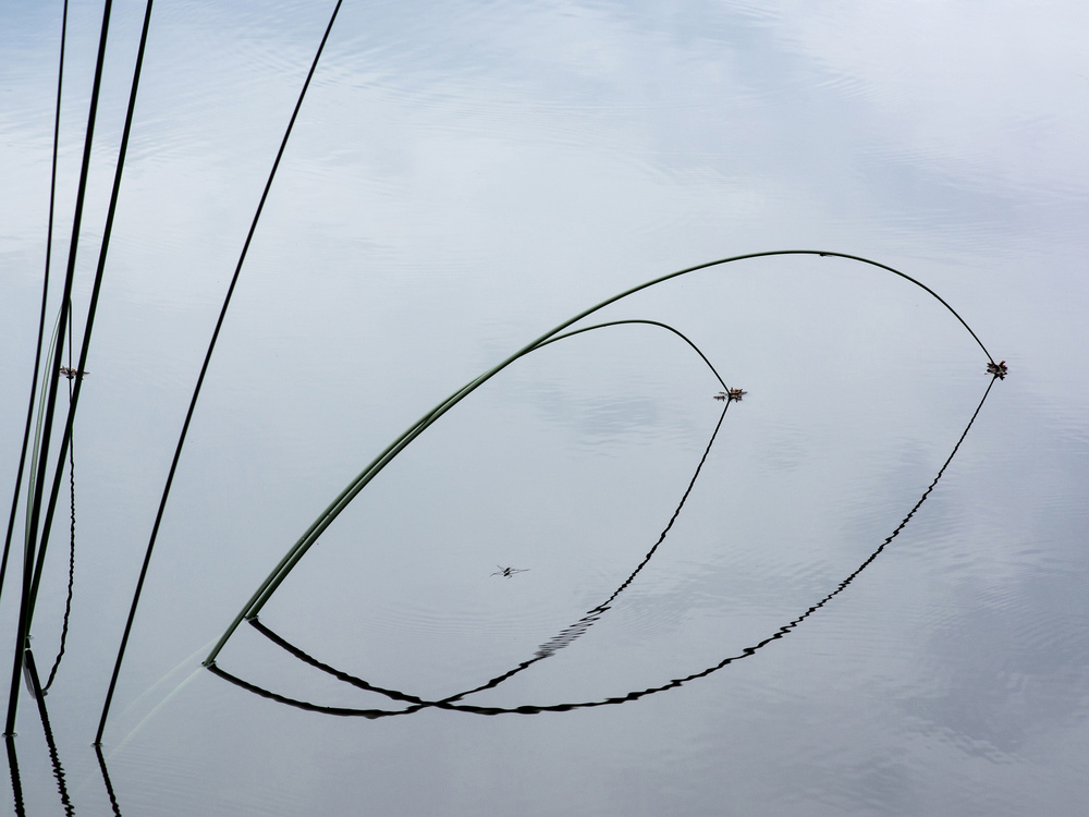 This is a very subtle image - one that will reward viewers who spend some time exploring it. I like the precise alignment of the reeds - running parallel, almost touching, and then curving down and into the water where the quivering reflections take you back to the start.