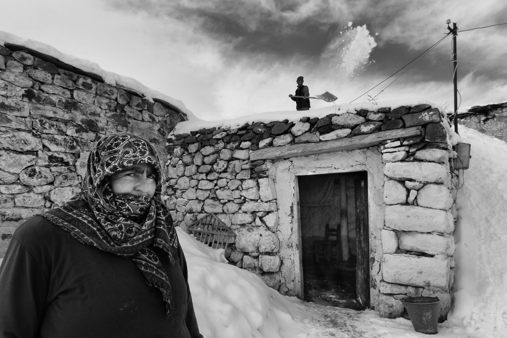 The winter conditions can be very harsh, especially in the east of Turkey. I took this photo  in Kars.  This village is very poor and villagers shovel snow to prevent their roofs from collapsing. They all are very welcoming. After I took pictures, they invited me tea and dinner. I never will forget this woman’s eyes. and I love it.