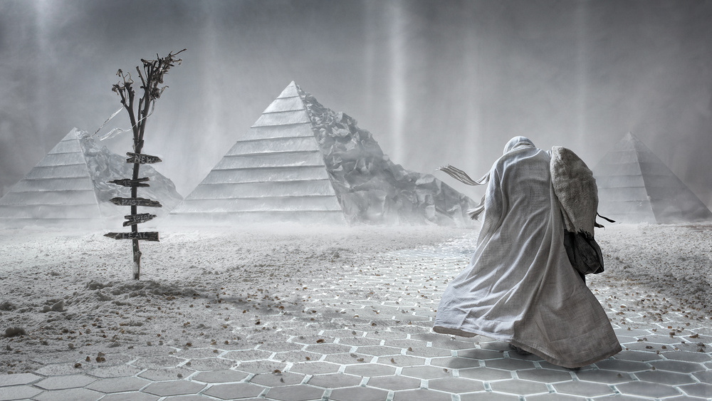 Science Fiction: “Camera, please capture this building, in contrasty light, so it has a suspense and mysterious mood” - “OK, sir but if you step 2 meters to the right, we get a better composition”