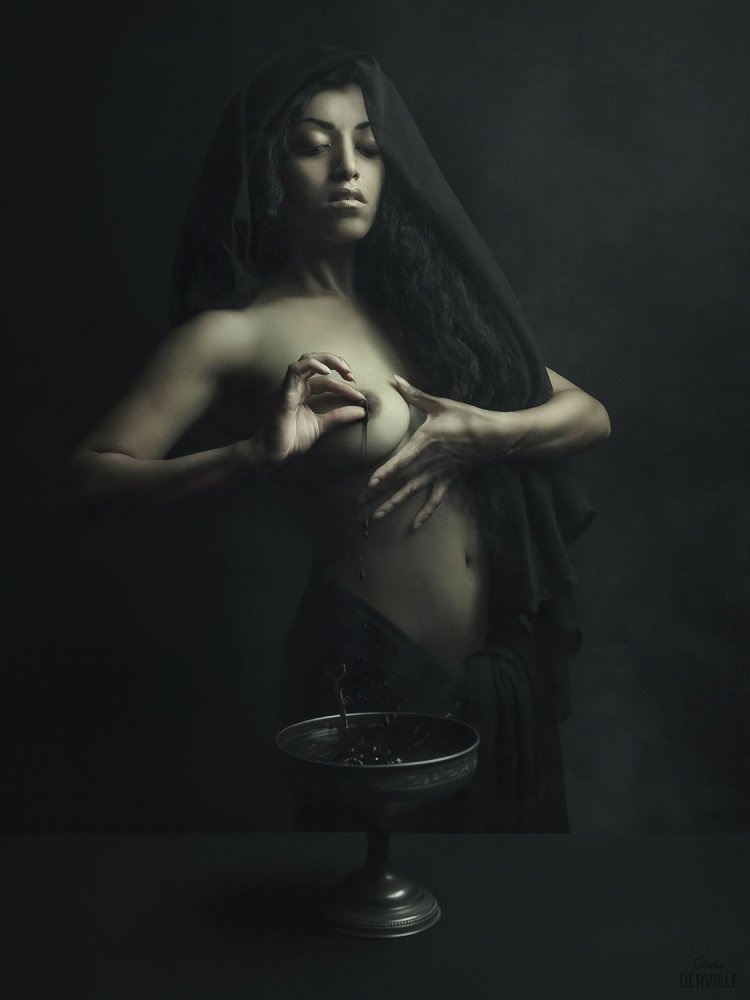 My ideas always come after a period of pause during which I don't think about the photo. I read, I go out, I go to exhibitions and it's as if the pieces of a puzzle came together little by little. When the idea is ripe, I have very precise flashes of what I want to achieve; I start by drawing them and studying the framing and the different plans needed. Then, I go to the research phase. I have a lot of books devoted to symbols which help me to give meaning to the elements present in my images. If that doesn't make sense, it's not necessary. I also collect visual documentation to establish the general atmosphere of the shoot. It is a valuable point of reference for all participants. After that comes the stage of casting. I am always looking for very expressive models, capable of playing a role and of timeless beauty. It is also at this moment that it is necessary to think of the costume, the accessories and the fittings. When the shoot comes, I need an atmosphere that combines concentration and relaxation. I put stress aside and I take advantage of the moment. I particularly appreciate when everyone gets involved and offers ideas during the shoot. We try and see if it works or not. I never sort the photos the same day, I let a few days pass to take a step back and have a fresh look at the project. Finally, I retouch the selected images using Lightroom and Photoshop, I publish them on social networks and sometimes I make prints that I sell and exhibit.