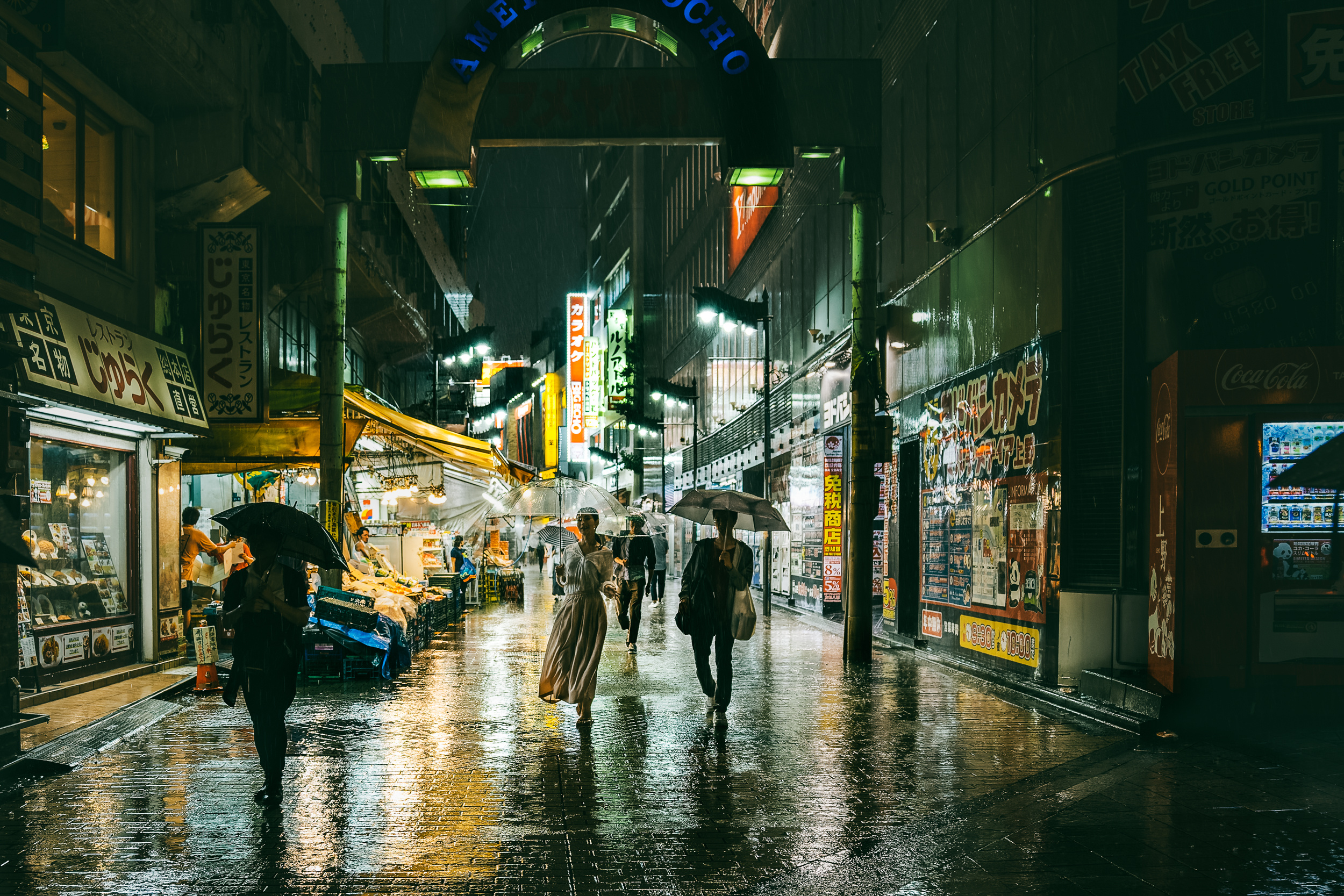 Also, taking a photo of a stranger's face is unacceptable in Japan. So I pay attention to the balance between subject/near view, middle view, and distant view. It's the same as for landscape photography. My goal is to take interesting photos of people in the near viewn  story-telling in middle view and distant view to add a 3D perspective to the 2D photographs. I also love rain and umbrellas in street photography. Roads, grounds,...everything shines. You can take beautiful reflections on puddles. Colourful umbrellas and raincoats make your subjects really stand out.