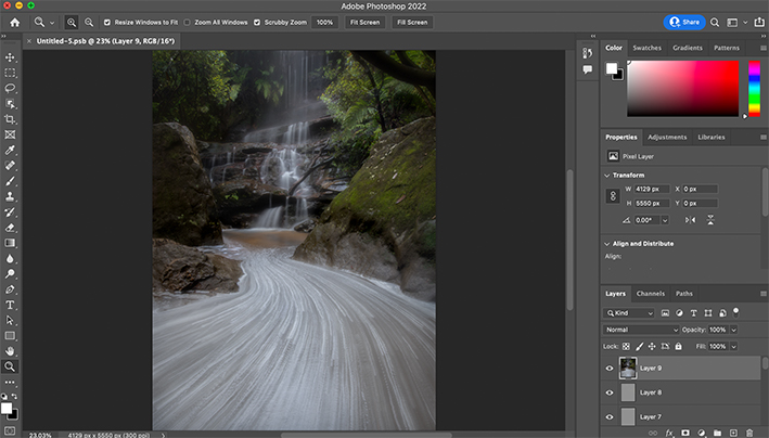 It should be noted that the image obtained from Step 2 (see p10) only achieves the long exposure effect, the foreground and background may not be properly focused. So in this step, I need to combine the sharp image produced from Step 1 with the long exposure image produced from Step 2.