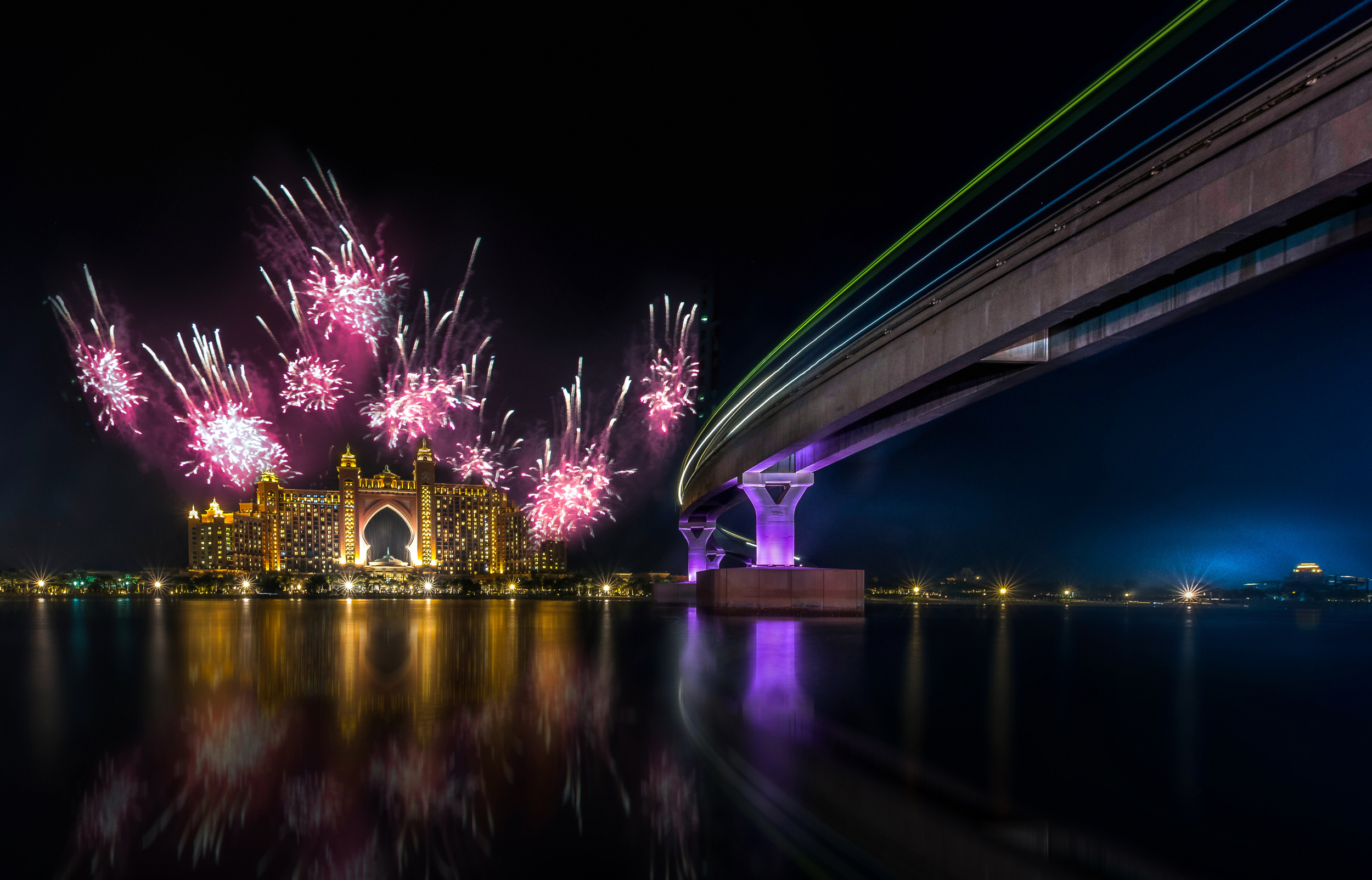 Australians celebrate the New Year with midnight fireworks in cities and towns throughout the country. Firework displays are launched off bridges, such as the Sydney Harbour Bridge, from jetties along the beaches, and on river banks, with the lights of the fireworks sparkling off the water. In a typical year, people pack picnic baskets and arrive hours early to get the best viewing spots.
