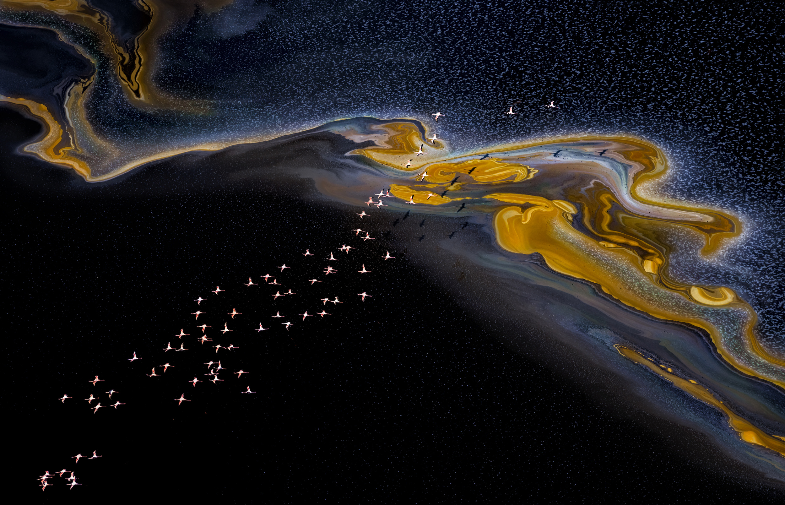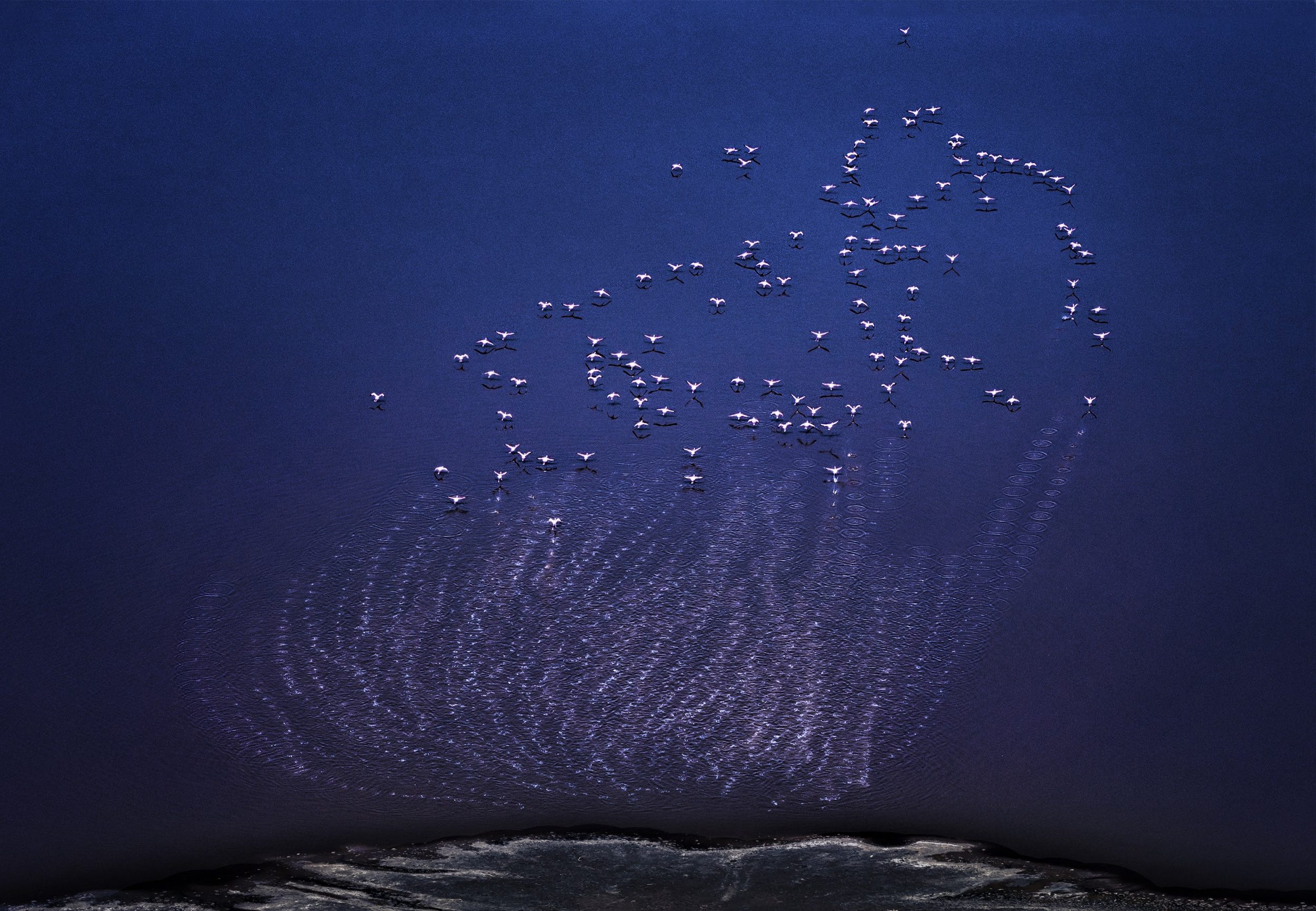 'Flamingos over lake Magadi'