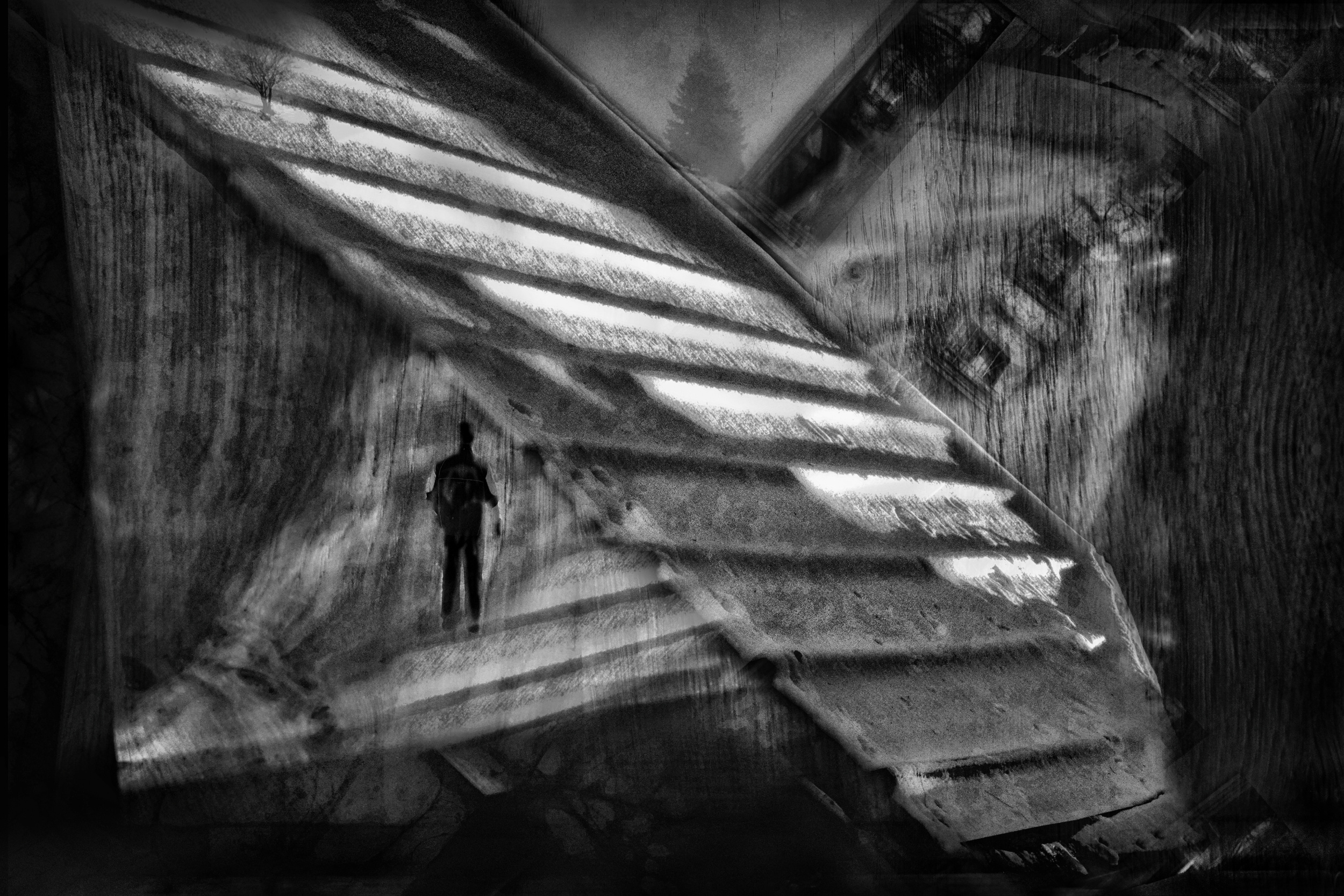He quotes : Let us embark on a journey into a world beyond reality, interwinning experiences and observations from different places and times. Using light and shadows an the technique of multiple exposures and montages, surreal visual stories has been created.